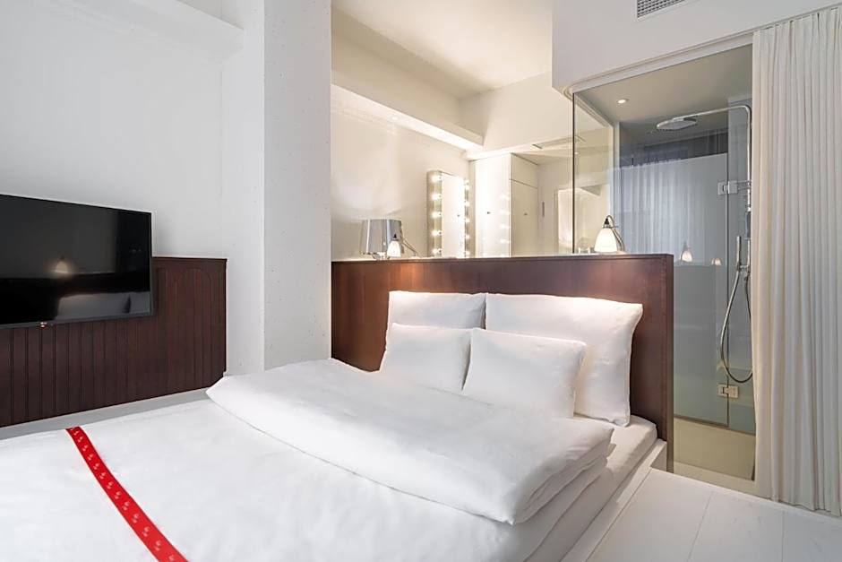 Nest Room (stage bed) is 140 square feet and includes a single bed 80-130 width plus desk, satellite tv , hairdryer, and safe.